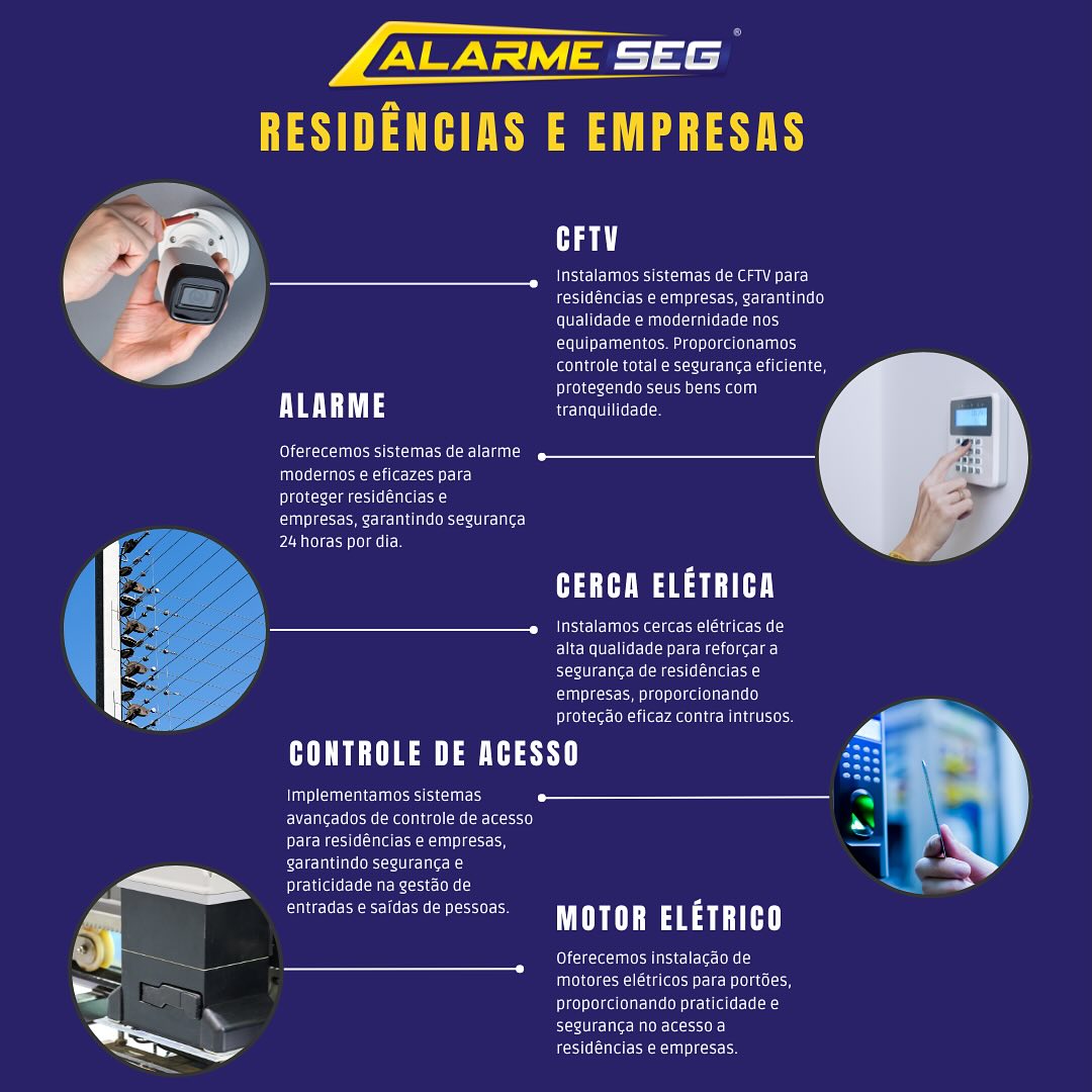Segurança Eletrônica (alarmes, câmeras, cercas) e Energia Solar fotovoltaica